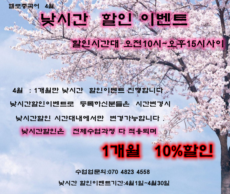 오랜만에 낮시간 할인 이벤트 진행합니다 .