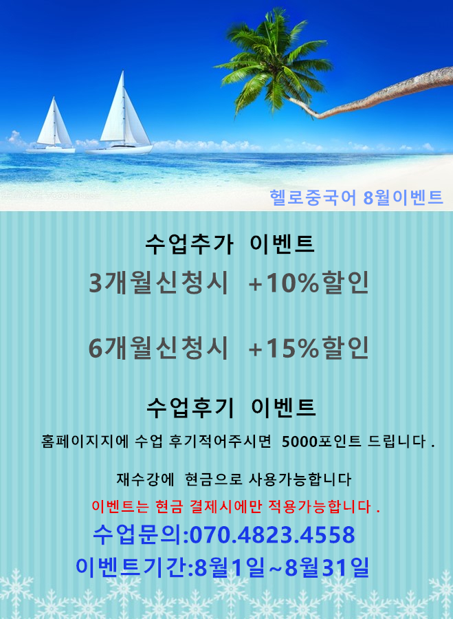 헬로중국어 8월이벤트 진행중입니다