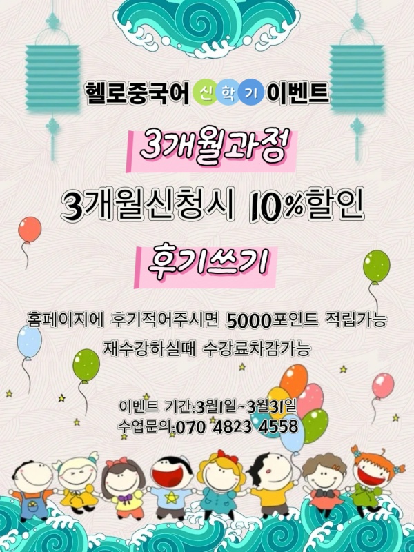 헬로중국어 3월 신학기 이벤트 진행중...!