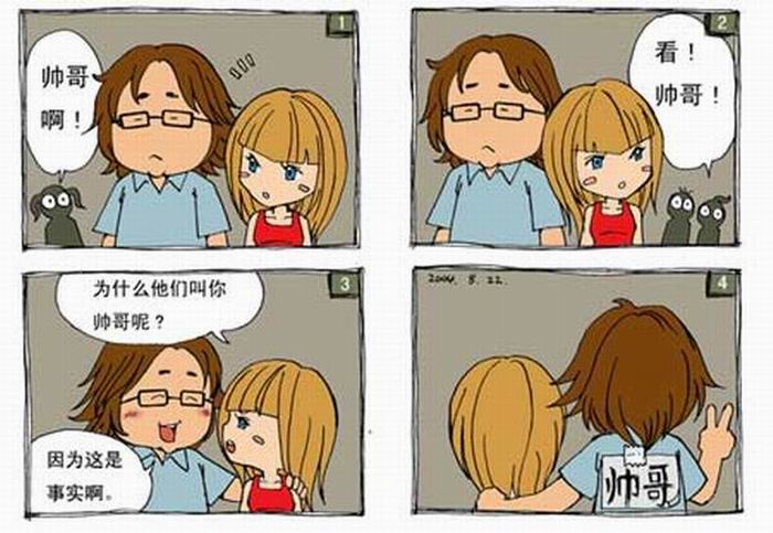 3.여:왜 다들 다 너한테 멋쟁이래?남:사실이니까.